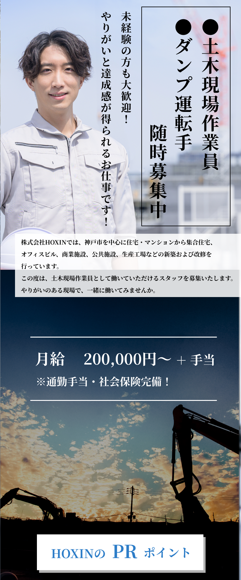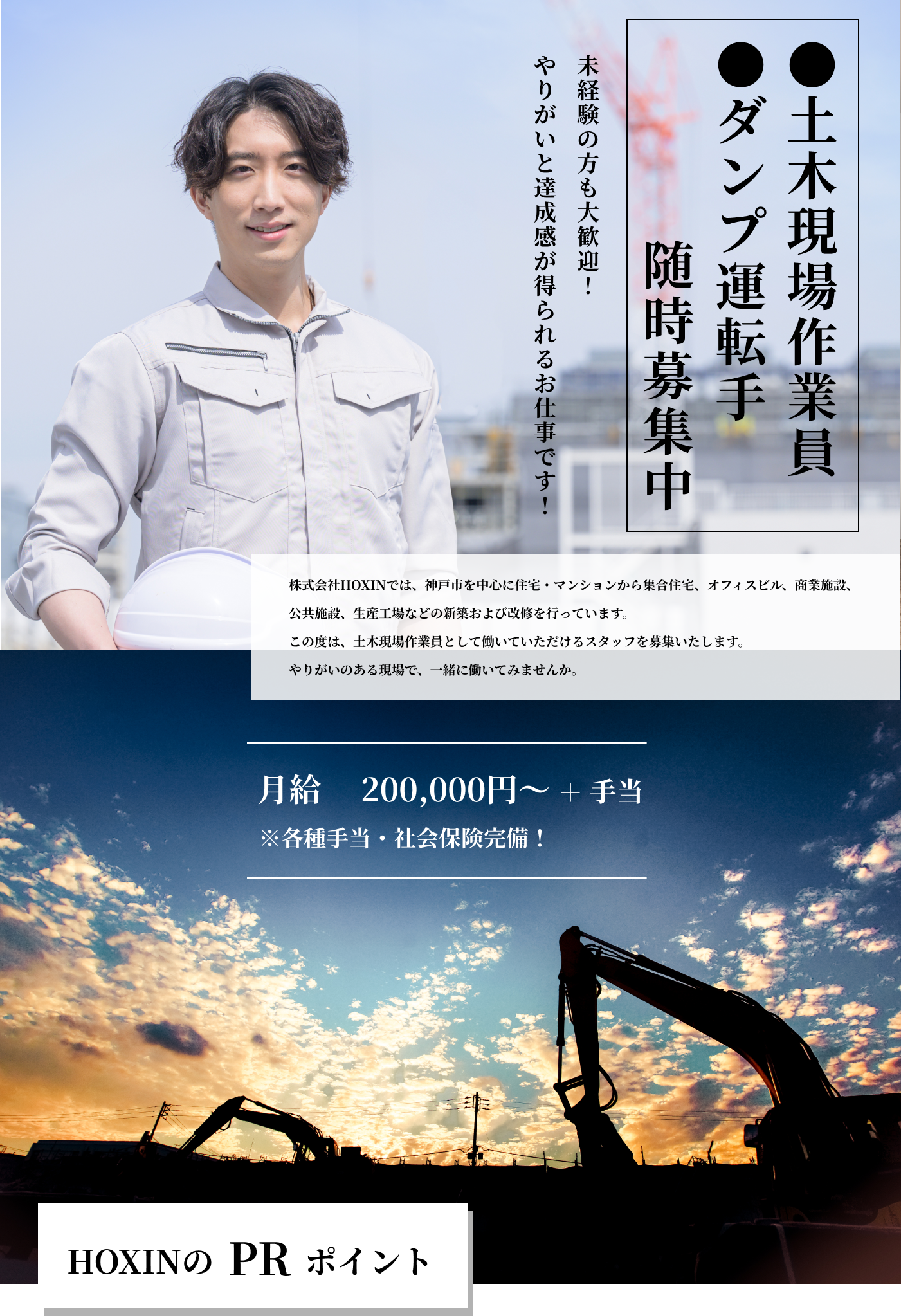 | 募集職種 | 現場作業員(施工監理)・ダンプ運転手 |