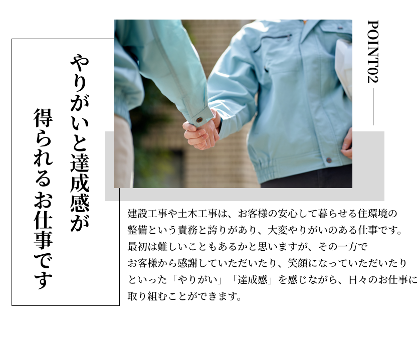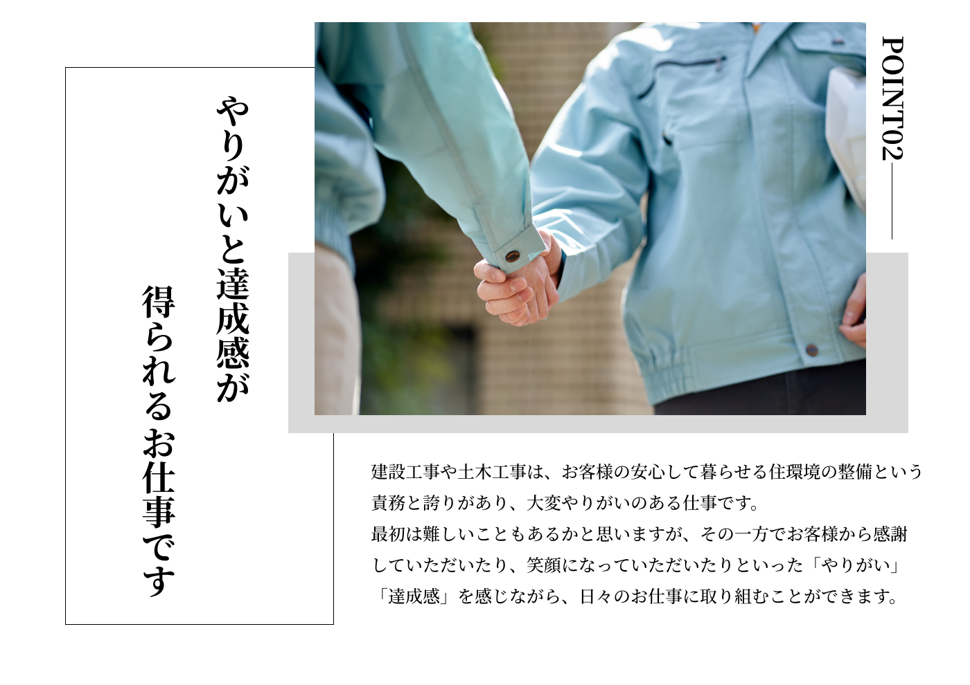 | 仕事内容 | 主に造成工事や基礎工事、土木工事の作業や中型ダンプ運転手などを行っていただきます |